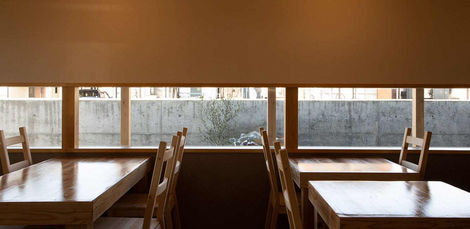 蕎麦屋斜里の業務拡大に合わせたお店の価値観を表現するための本店の新築する計画である。敷地は県道沿いの住宅街の中にあり、それらの喧騒と蕎麦屋の風情との距離間をどのように計画するのかが要点となった。北側に庭とH=1.6mの目隠しのためのRC塀を計画し、周囲の喧噪から距離を確保した風情ある内部空間となるように計画している。